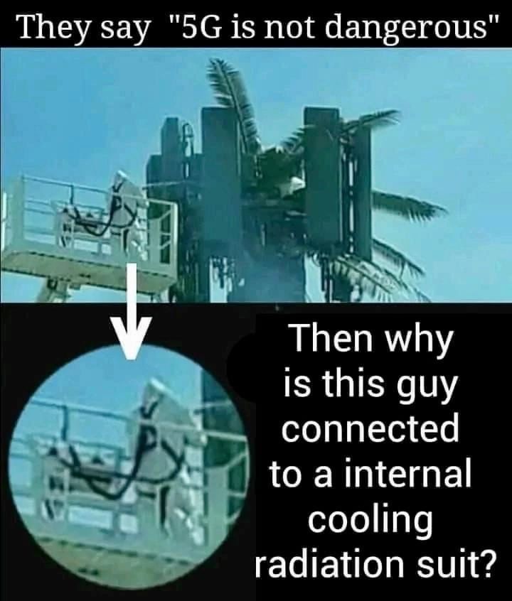 It’s well known that 5G is NOT for mobilephones and NOT for faster computers! 5G is a microwave weapon wich cook you from the inside out! That’s why he is wearing that cooling suit!